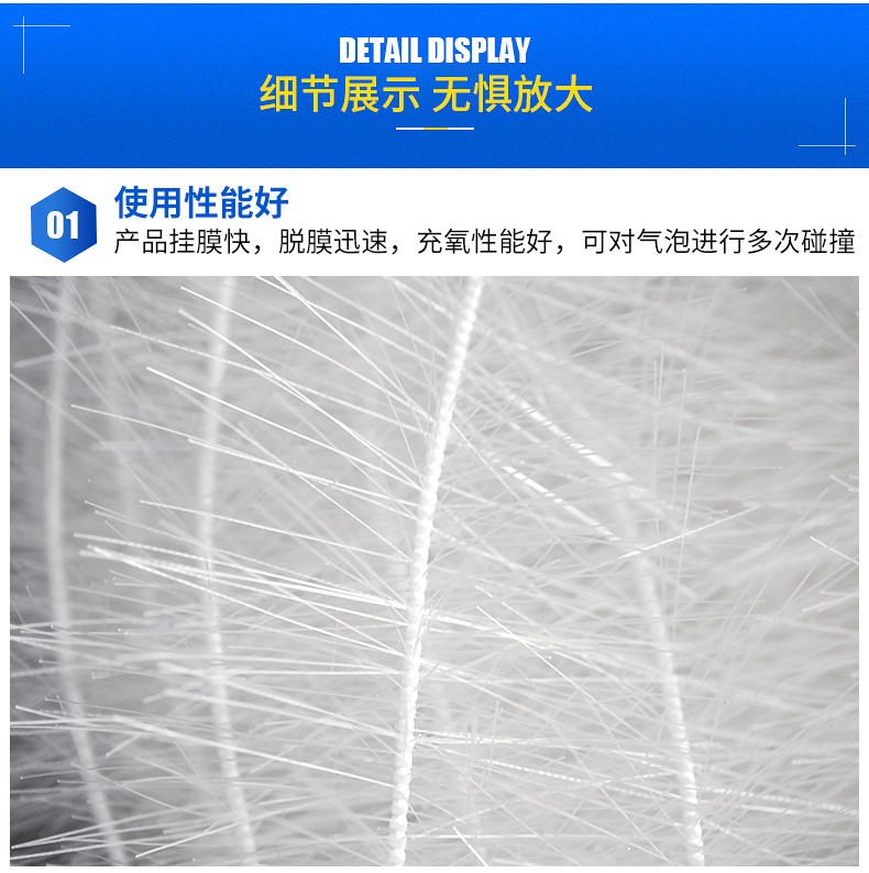 懸掛式立體彈性填料具有高活性,在填料表面生長的微生物膜與填料流化碰撞,曝氣沖刷使微生物處于高活性,處理效果很好。選用聚酰胺 聚稀類等耐腐 奶高溫 耐老化材料,具有親水 吸附 抗熱等優(yōu)勢。