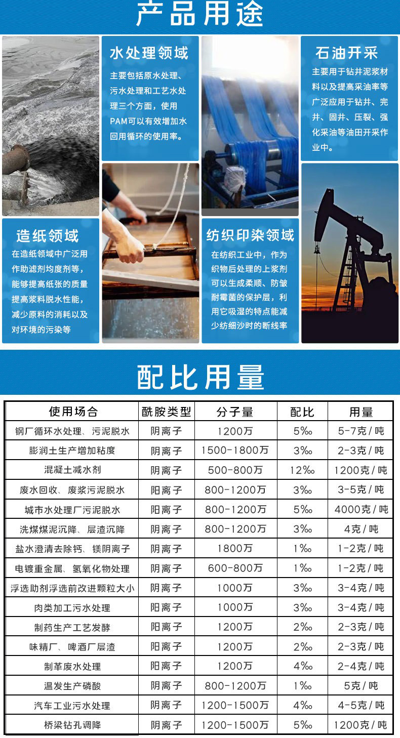 陽離子聚丙烯酰胺通過交聯(lián)吸附的網(wǎng)狀結構,作為了一類重要的絮凝劑 增稠劑 減阻劑 泥漿處理劑 表面活性劑 土壤改良劑,水土保濕劑 造紙 印染紡織增強劑等;在石油開采 水處理 紡織造紙 選礦 醫(yī)藥等行業(yè)中廣泛用到。所以被稱之為 百業(yè)助劑。