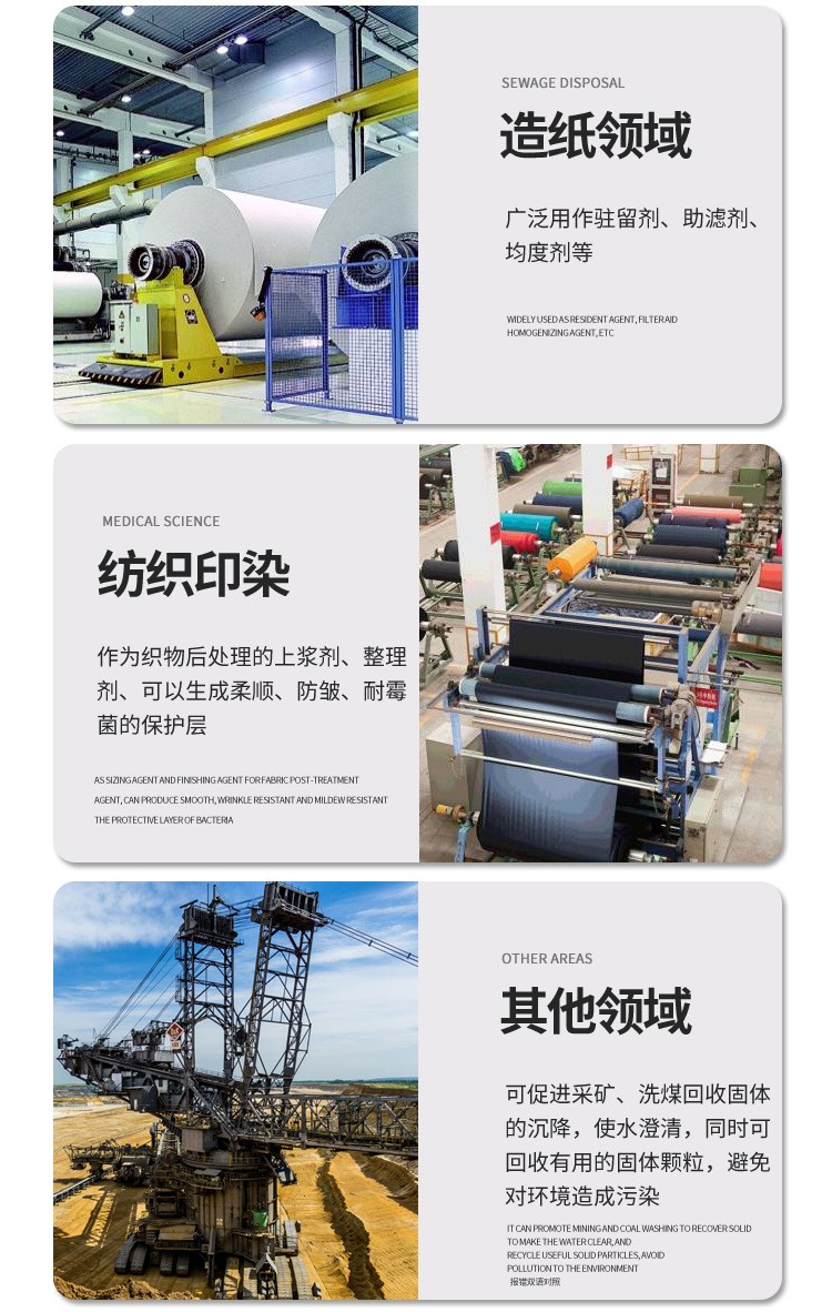 PAM陽離子高分子化合物,具有多種活潑的基團。與多種物質親和,吸附。常用于 城市污泥 造紙廠污泥 等工業(yè)污泥脫水處理中。