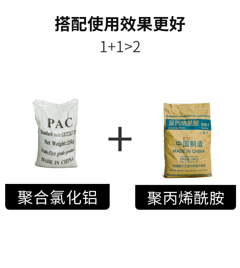 PAM聯(lián)合使用就是讓PAC先完成中和電荷膠體脫穩(wěn)形成細(xì)小絮體之后,進(jìn)一步加大絮體體積有利于充分沉淀。由于聚合氯化鋁PAC反應(yīng)時間很短,所以加入后需要強(qiáng)烈的混合,PAM作用時間要長,混合注意先強(qiáng)后弱——先強(qiáng)是為了混合均勻后弱是為了避免破壞絮體!聚丙烯酰胺屬于絮凝劑,聚合氯化鋁屬于混凝劑,一般情況下是先加混凝劑再加聚丙烯酰胺,但為了保險起見,還是建議大家通過實驗效果來確定添加的順序!加藥點(diǎn)、加藥量、加藥時間以及混合強(qiáng)度需要實驗確定,千萬不能把他們兩種放在一起使用。否則會影響效果,增大使用成本,如有不懂,可以咨詢我們的